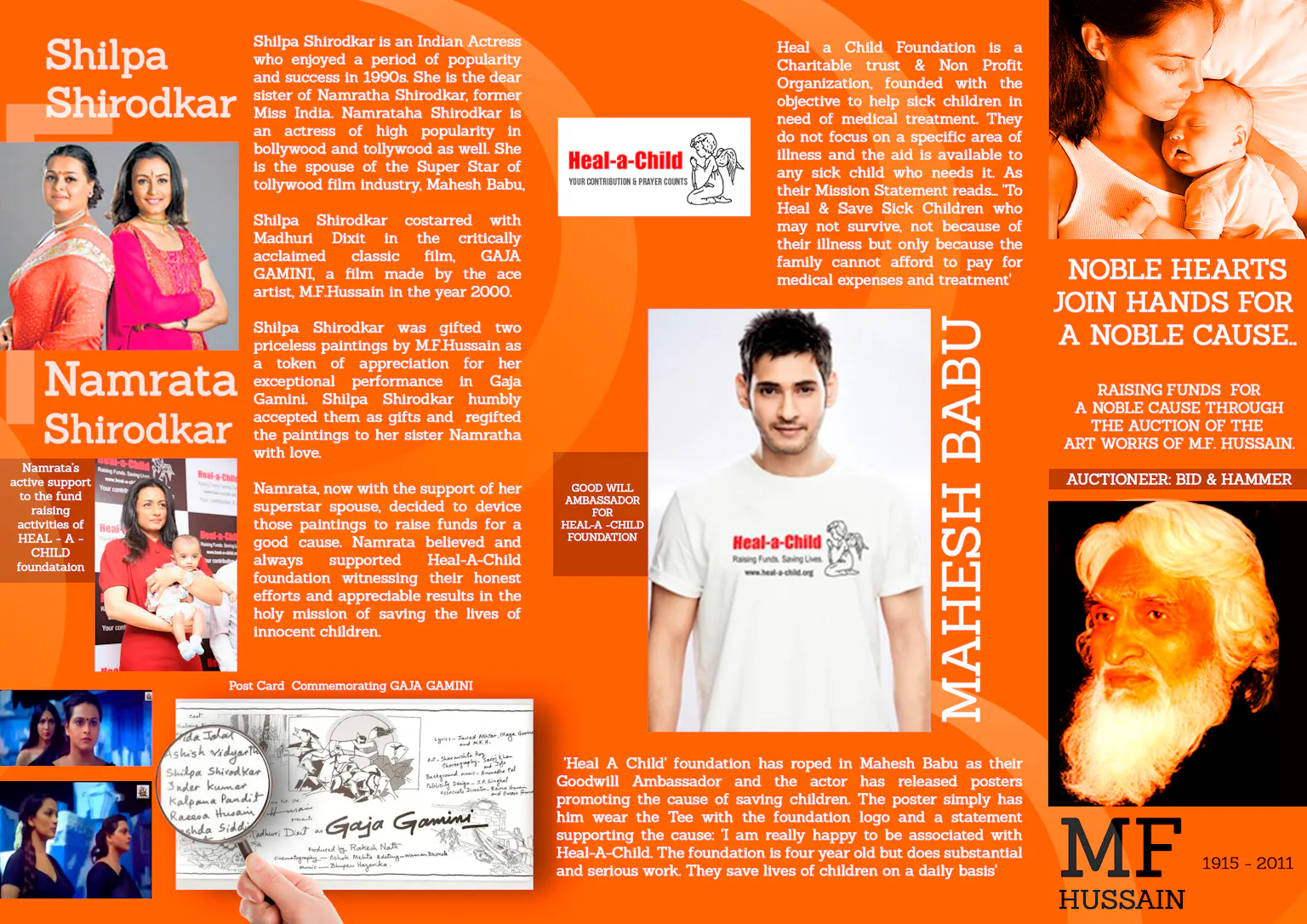 Now based in Hyderabad along with her husband and two young children, Namrata became interested in art from the time she moved into her own apartment in Mumbai, after her win in the Miss India contest 1993, and started doing its interiors. The painting gifted by Husain in 1998 and another by her sister in 2004 was a fillip to her quest to collect good art from the modern Indian masters and she continued to pursue her interest after moving to Hyderabad in 2005, where she also pro-actively supports her husband Mahesh Babu’s involvement as the celebrity ambassador of Heal-a-Child Foundation. As her art collection evolves and changes, she is keen to make a difference to the lives of these children by a personal contribution herself through the auction proceeds of these paintings.